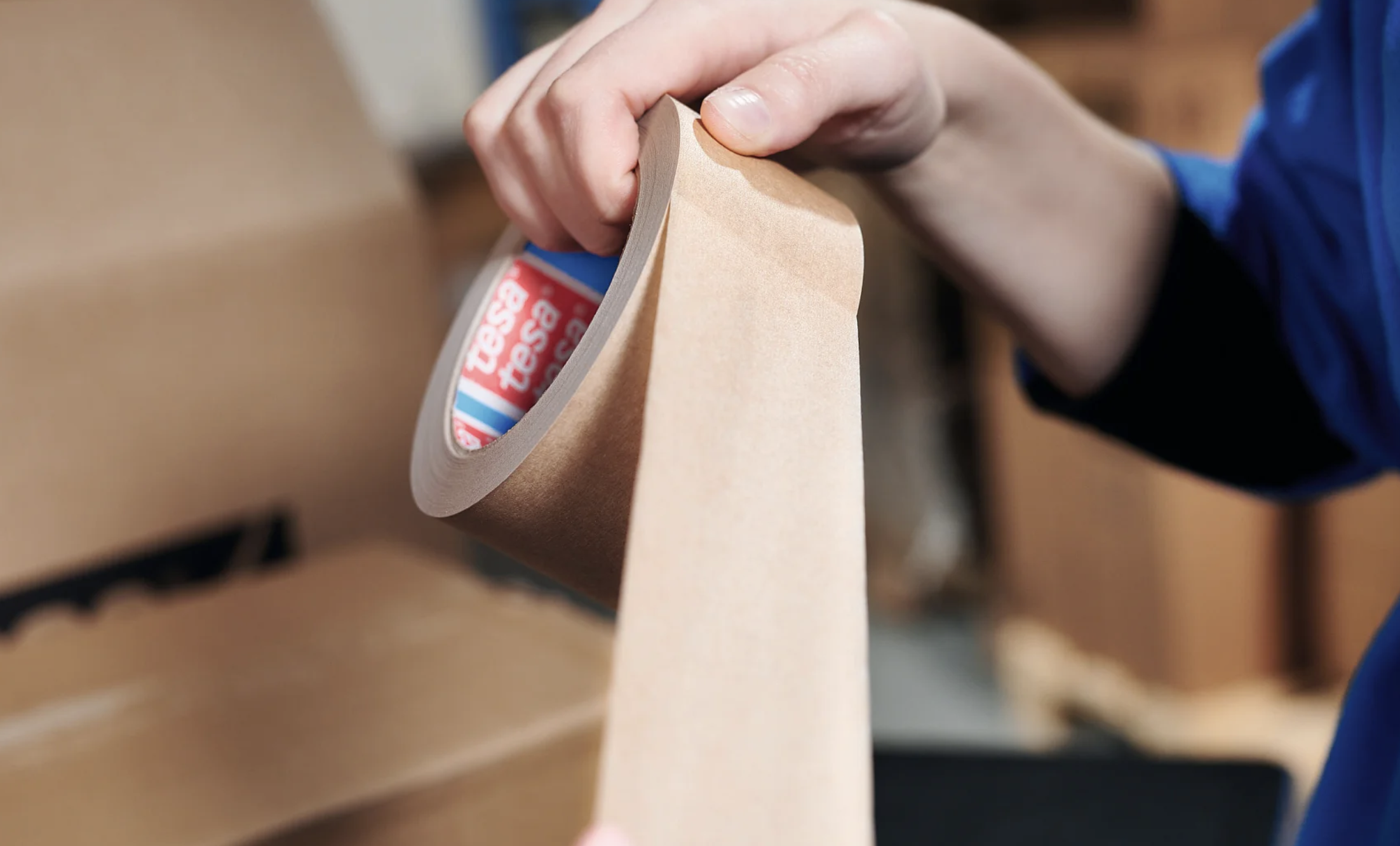 cinta embalaje de papel - adhesivo de caucho natural - calidad ECO - rollo de 50mmx50 M - caja 36 rollos - color: CAFE